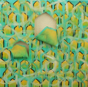 Il y a dans cette série, une remise en cause du support. La toile elle même devient matière. Les morceaux proviennent de toiles différentes, mais ils s’agencent, parce qu’ils ont des tonalités et des lignes similaires. Dans mes toiles, à l’image de la vie, on avance, on recule, on tourne en rond, on repart on revient, on casse tout pour mieux recoller les morceaux.